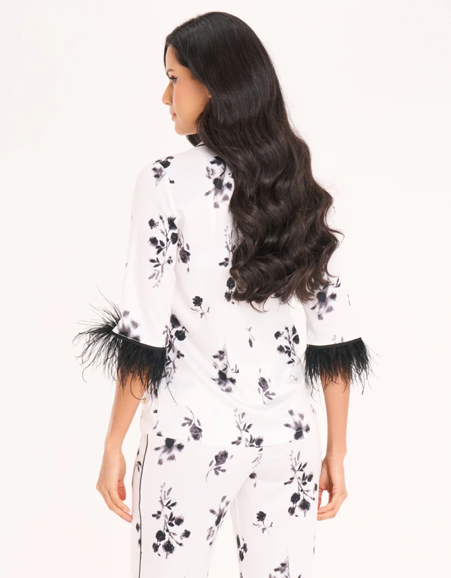 قميص نوم قصير من الشيفون والساتان باللون البنفسجي الداكن